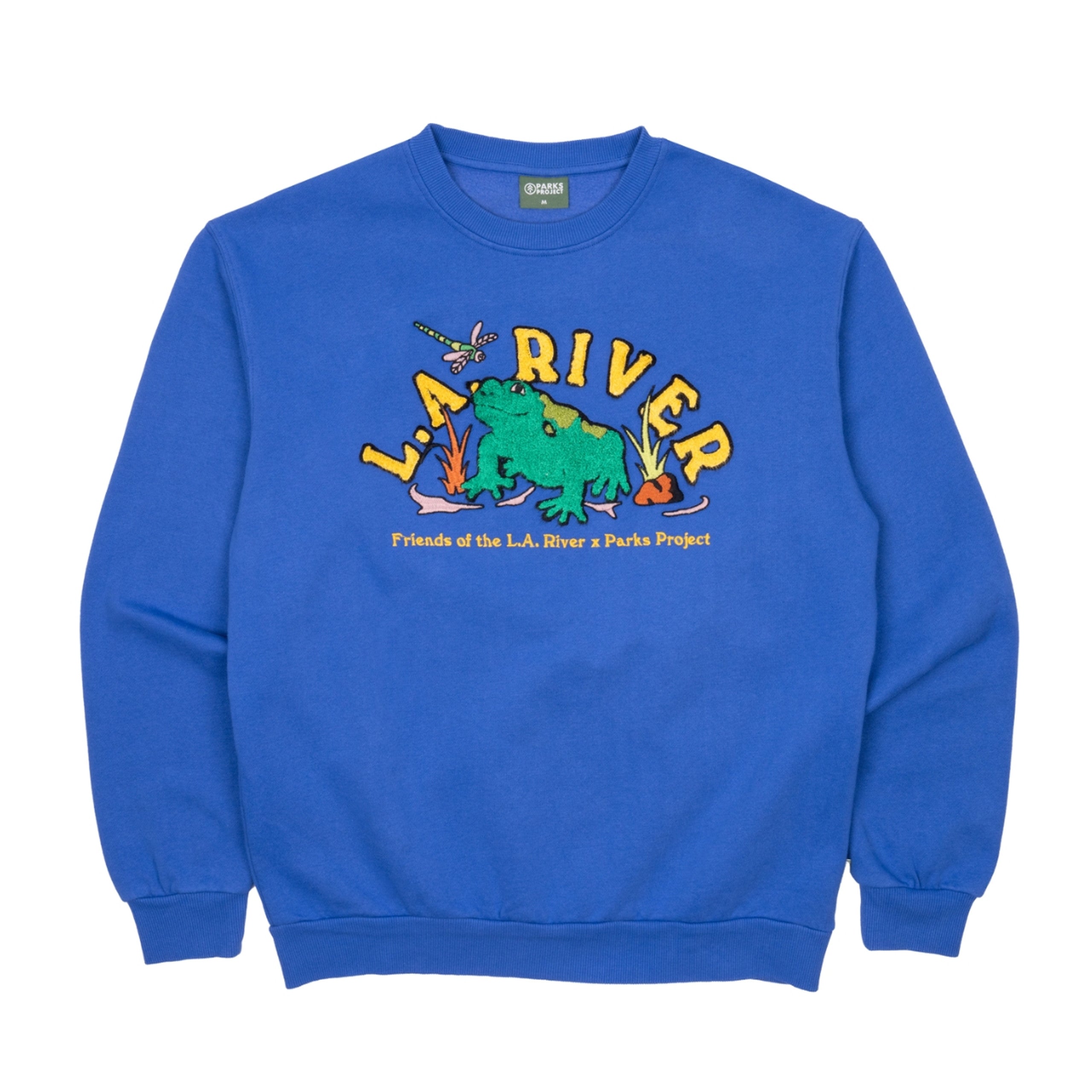 Inspired by the rivers that are home to so much diversity, our crew is made from 80% cotton and 20% polyester, and features embroidered toad basking and dragonflies roaming along the LA River.